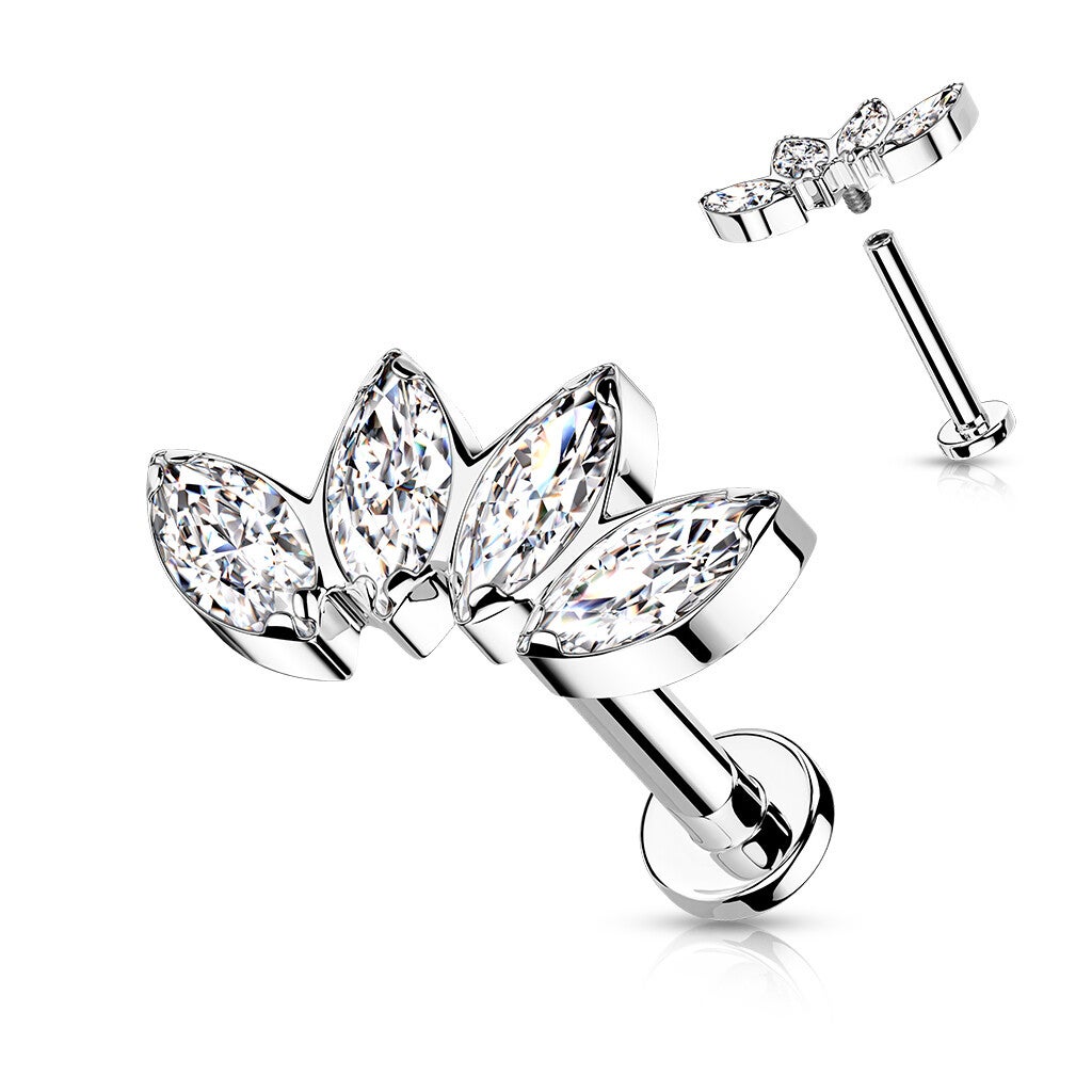 Implant Grade Titanium Internally Threaded Labret With 4 Marquise CZ Fan Top